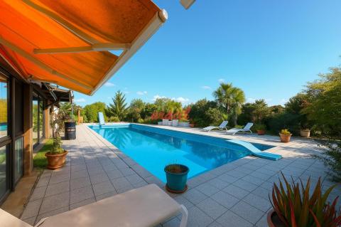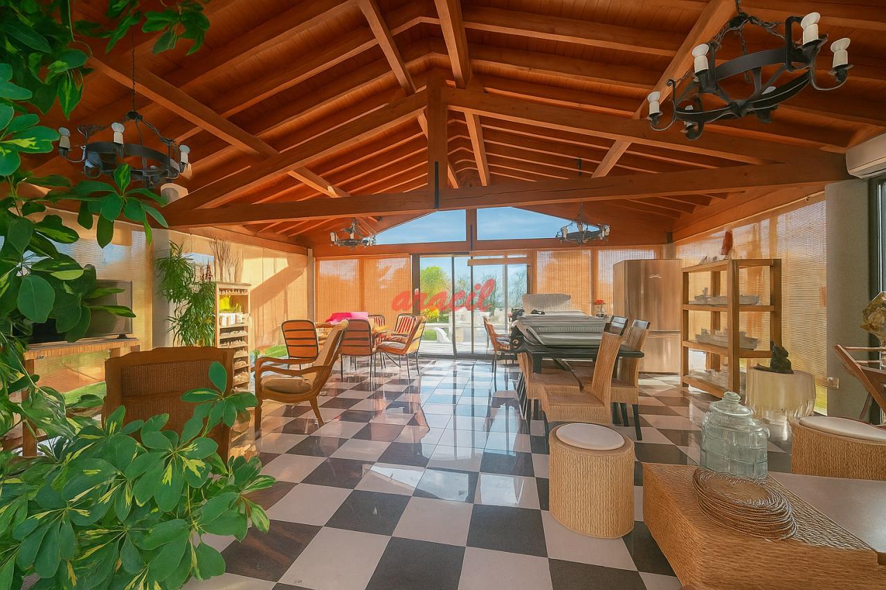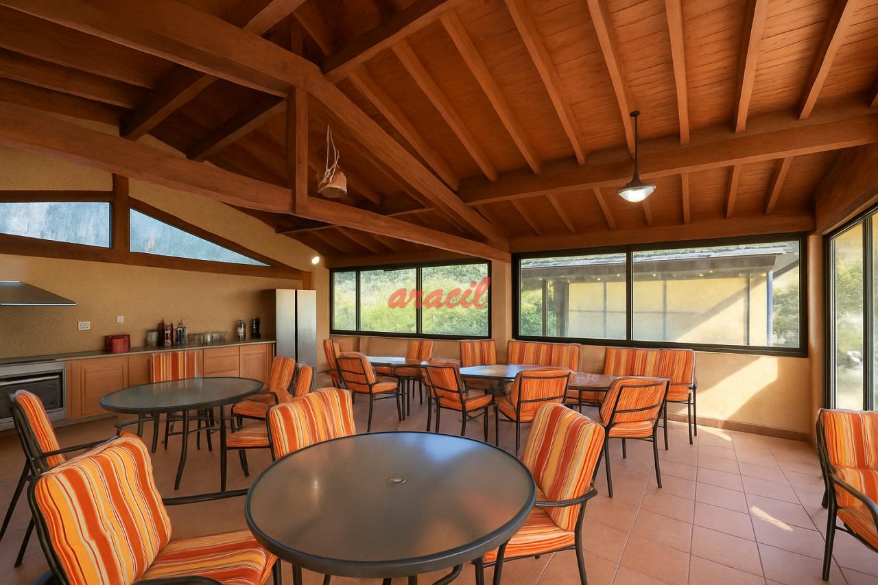 Esta área incluye dos construcciones: una está equipada con cocina y barbacoa, perfecta para organizar asados y cenas al aire libre; la otra construcción está destinada como zona de estar, proporcionando un lugar cómodo y acogedor para relajarse después de un día de diversión bajo el sol.