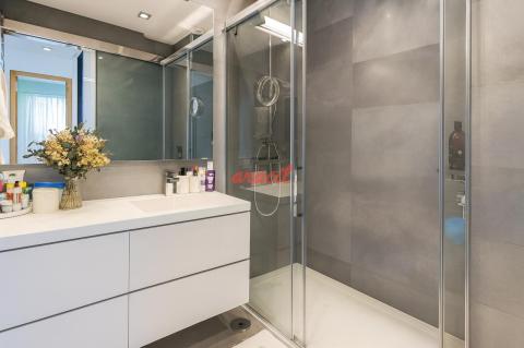 Dormitorio principal de gran tamaño, con espectacular vestidor de puertas acristaladas y baño completo con ducha.